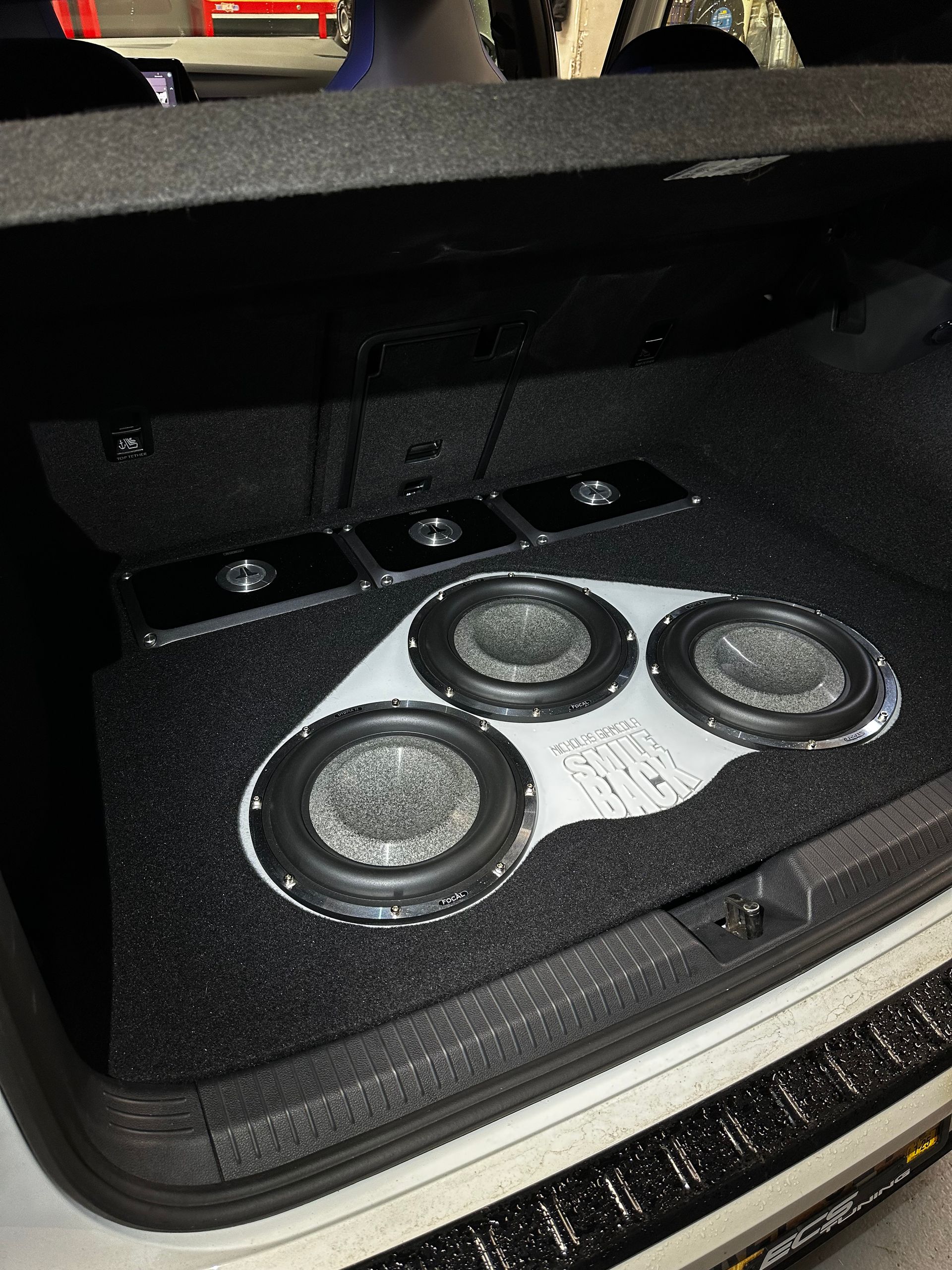 Front & Rear Focal Utopia M 3 way, 3 Focal Utopia M 10",JL VXI 800/8, JL VXI 400/4, JL HD1200/1, Custom door pods, Custom sub enclosure